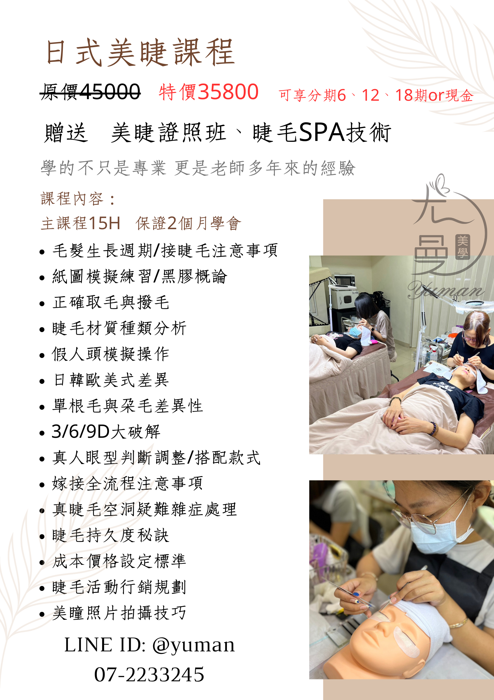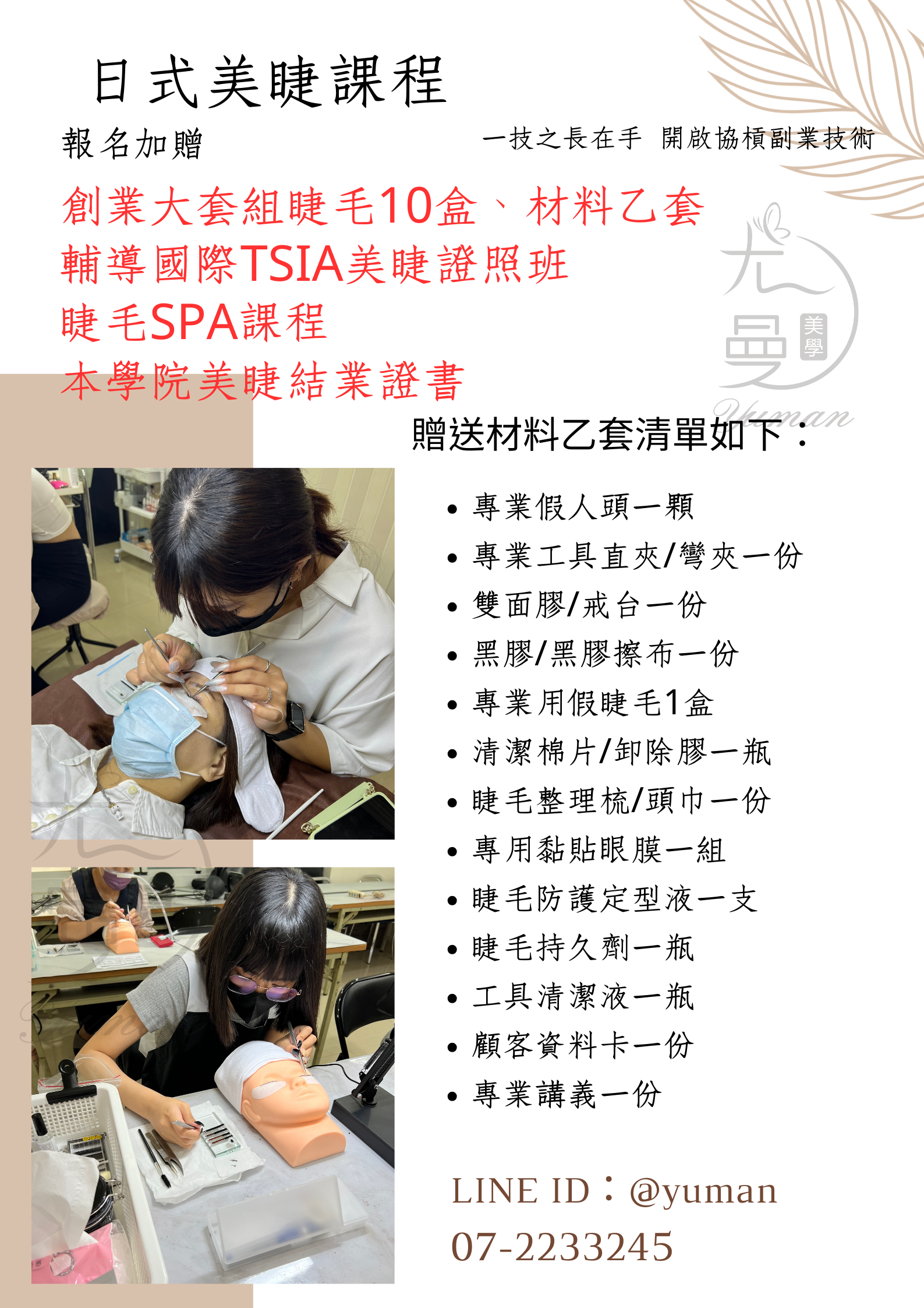 尤曼美學 課程平日/假日皆有開課,時段早/晚皆可預約
